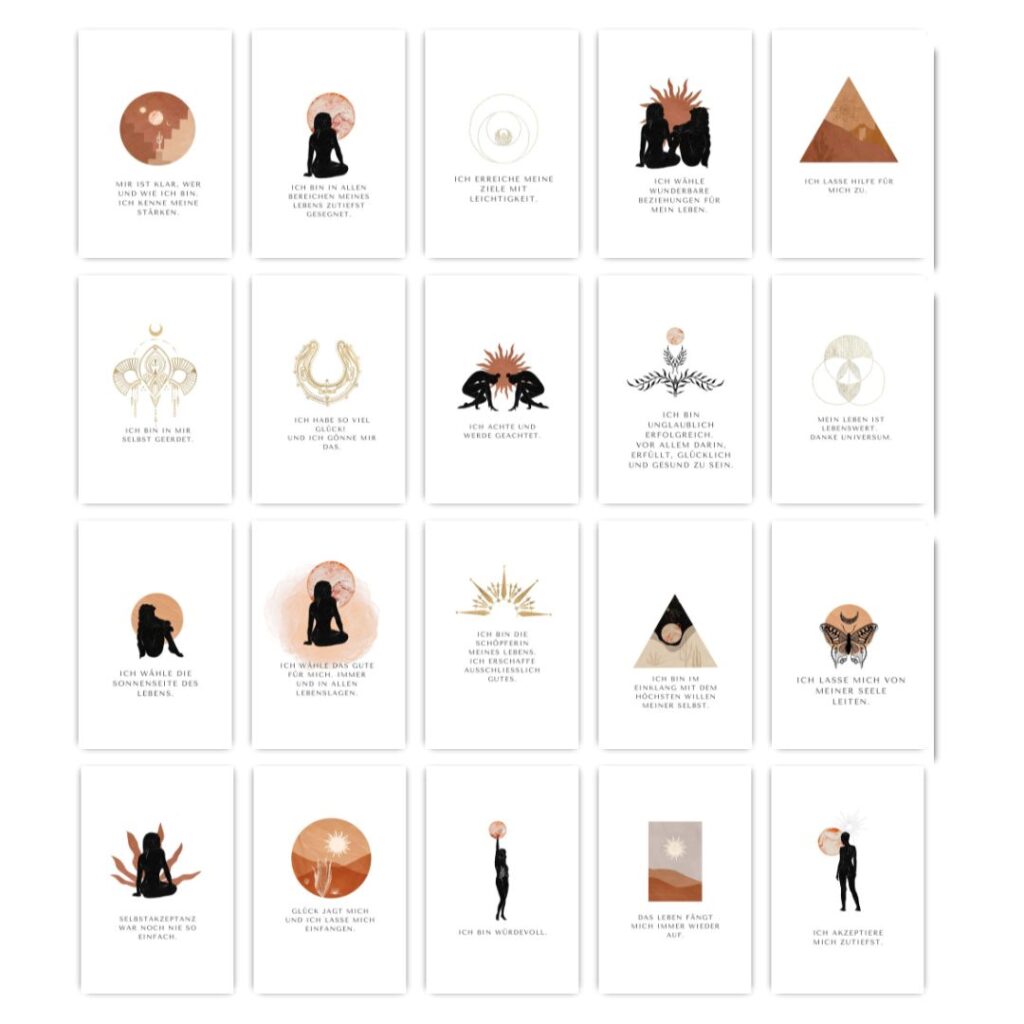 20 Affirmationskarten im Postkartenformat (10.5 x 14.8) zum Ausdrucken.